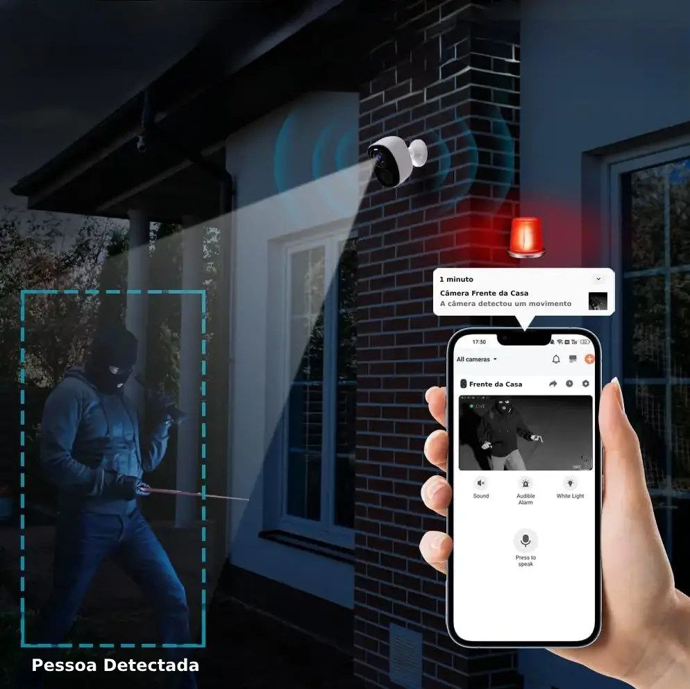 Detecção de movimento e alertas: Receba notificações automáticas em caso de atividade suspeita.